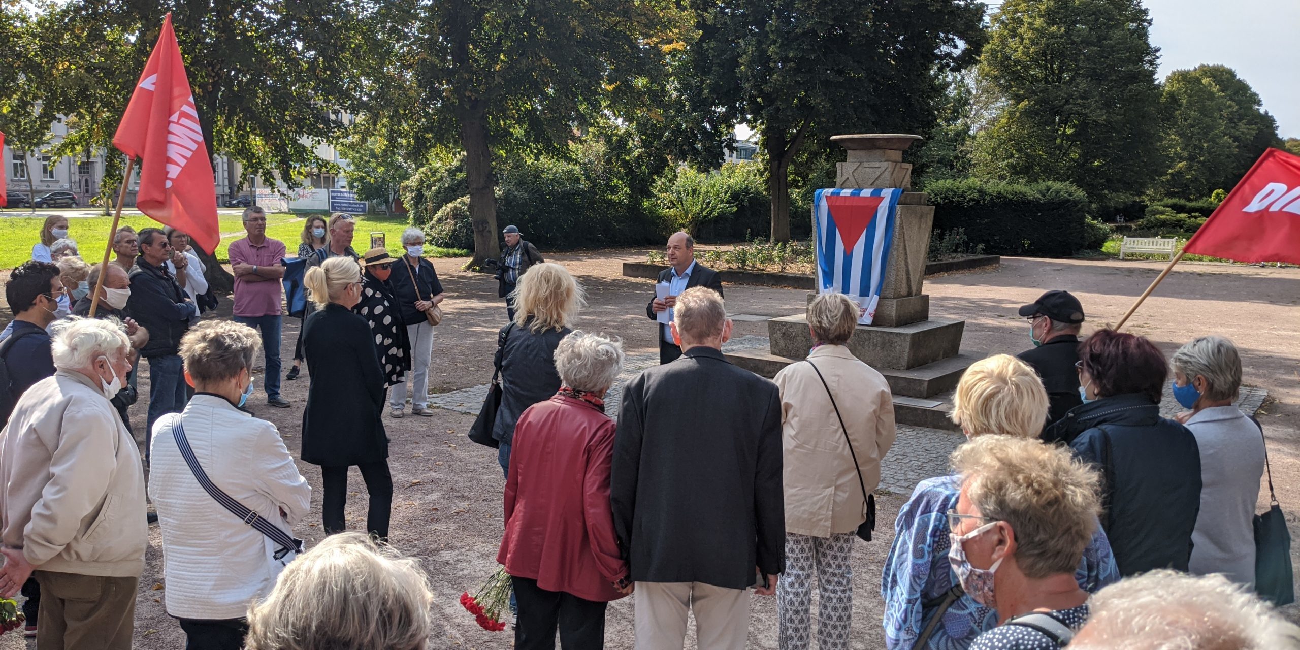Erinnerungskultur ist wichtig – und Aufarbeitung endet nie. Das erklärte am Sonntag Axel Holz, der Bundessprecher der VVn-BdA. Im Rosengarten hatten sich knapp 100 Hansestädter eingefunden, um am dafür aufgestellten Denkmal an die Opfer des Faschismus zu erinnern. Und das wie in jedem Jahr am zweiten Sonntag im September. Neben Mitgliedern der Parteien Die Linke, SPD und Bündnis 90/Die Grünen war auch Bürgerschaftspräsidentin Regine Lück (Linke) anwesend.